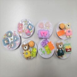 여러가지 장식을 넣어 UV램프에 빛을 쬐어 굳힌 후 여러가지 장식과 악세사리로 만드는 공예 활동입니다.