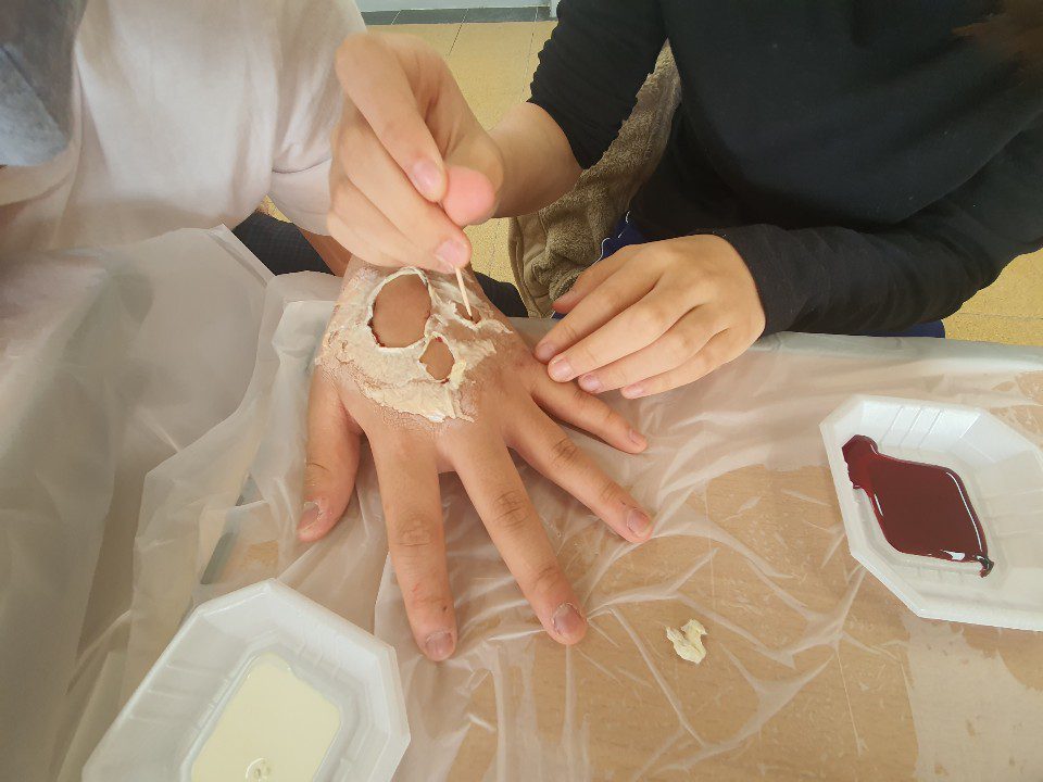 오늘은 얼마전 의성 다인중학교 친구들과 재밌게 수업을 한 특수분장 수업을 포스팅 할까 합니다 특수분장은 영화나 공연 등 연출효과를 높이기 위하여 그 인물과 분위기에 맞게 특수적으로 분장을 하는 겁니다 우리 친구들이 쉽게 접할 수 없는 직업체험이라 요즘 굉장히 인기있는 수업이기도 합니다 먼저 두명씩 짝을 지어 상대친구 손에 긁힌상처를 해볼께요 라텍스와 키친타올을 이용해서 모양을 만들고~ 인조피와 […]