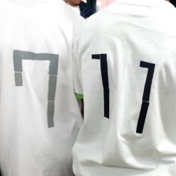하얀 면티셔츠 위에 염색지를 이용하여 유니크한 도형 또는 이름과 학급을 예쁘게 오려