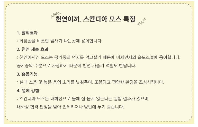 먼저 스칸디아 모스의 특징에 대해 간단히 설명을 하자면~~