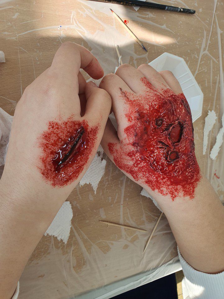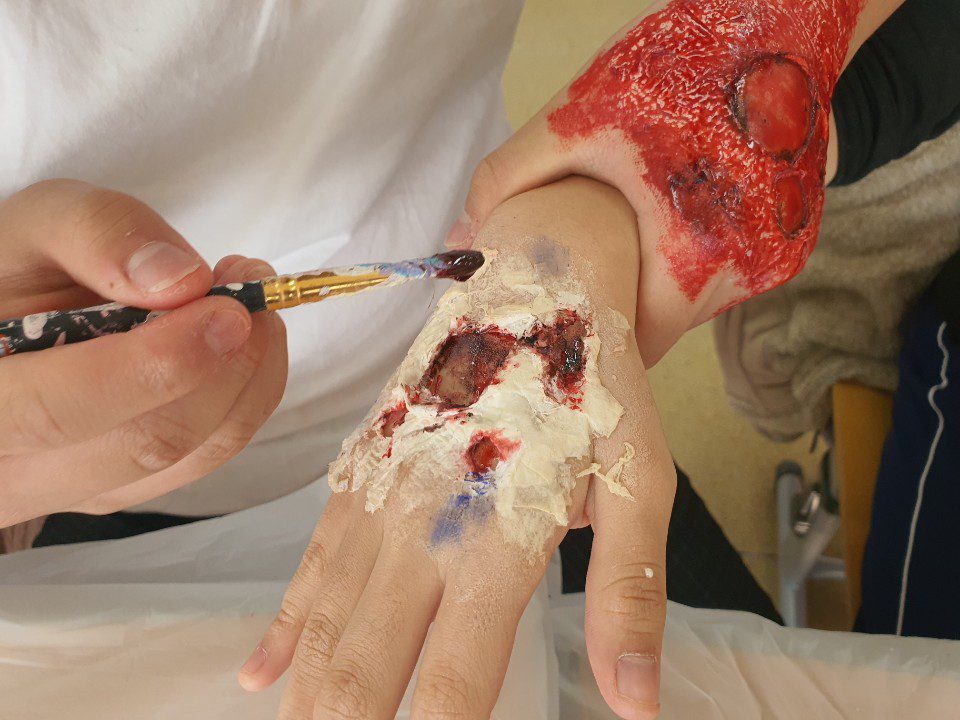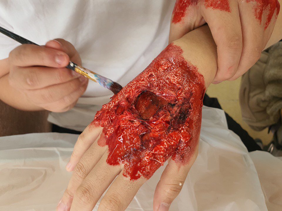 오늘은 얼마전 의성 다인중학교 친구들과 재밌게 수업을 한 특수분장 수업을 포스팅 할까 합니다 특수분장은 영화나 공연 등 연출효과를 높이기 위하여 그 인물과 분위기에 맞게 특수적으로 분장을 하는 겁니다 우리 친구들이 쉽게 접할 수 없는 직업체험이라 요즘 굉장히 인기있는 수업이기도 합니다   먼저 두명씩 짝을 지어 상대친구 손에 긁힌상처를 해볼께요 라텍스와 키친타올을 이용해서 모양을 만들고~ 인조피와 […]