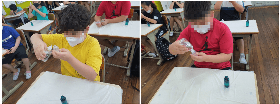오늘은 진로직업체험으로 코로나19에서 나를 지켜 줄 손소독제와 종이비누를