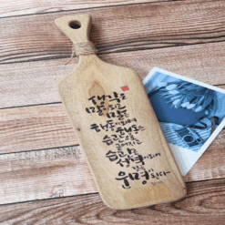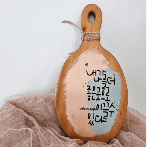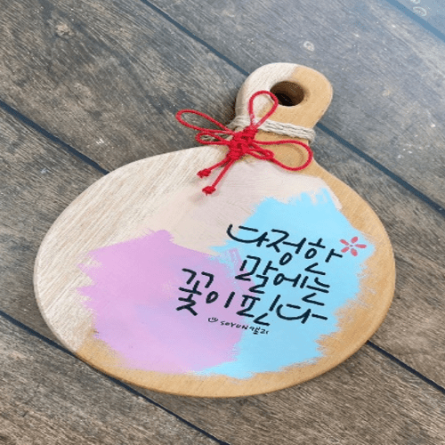 원목장식도마에 캘리그라피로 원하는 문구를 선택하여 도마를 예쁘게 장식해보는 체험활동