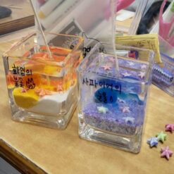 색모래와 다양한 재료로 꾸며 오랫동안 감상하실 수 있는 캔들을 직접 만들어보는 체험활동