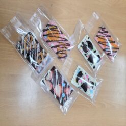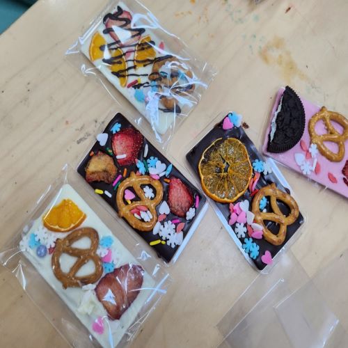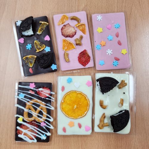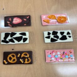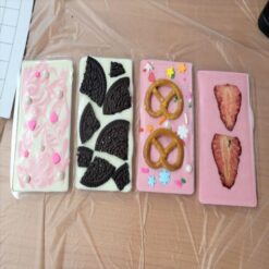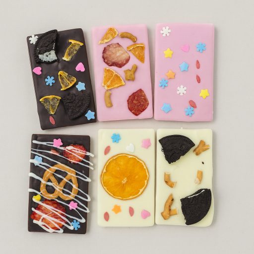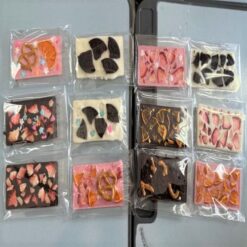 바크 초콜릿은 얇고 평평한 모양의 초콜릿 조각으로, 주로 다양한 드라이 과일, 쿠키 조각,