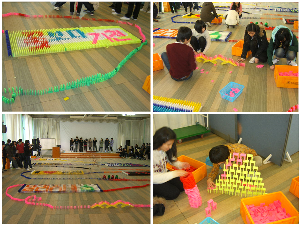 도미노를 세우고 쓰러트리는 신나는 단체도미노 체험